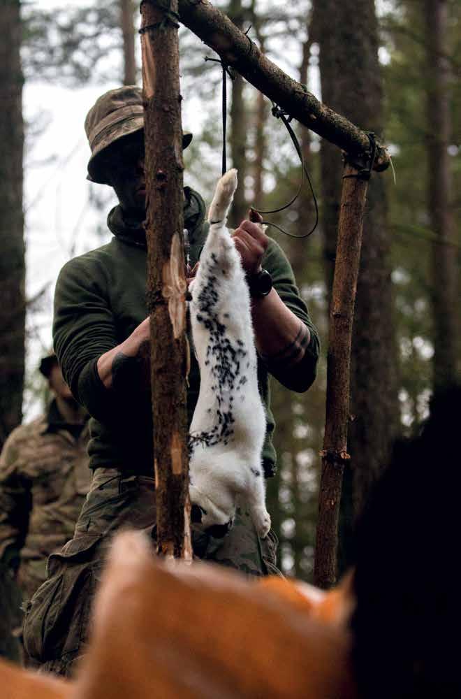 “Er der flere spørgsmål?”, spørger en befalingsmand roligt. Skoven, der før emmede af munterhed og lethed, sitrer nu af alvor og dyb koncentration. Øjeblikket, konstabeleleverne har frygtet eller set frem til, var kommet: Det er tid til at slå ihjel for føde.