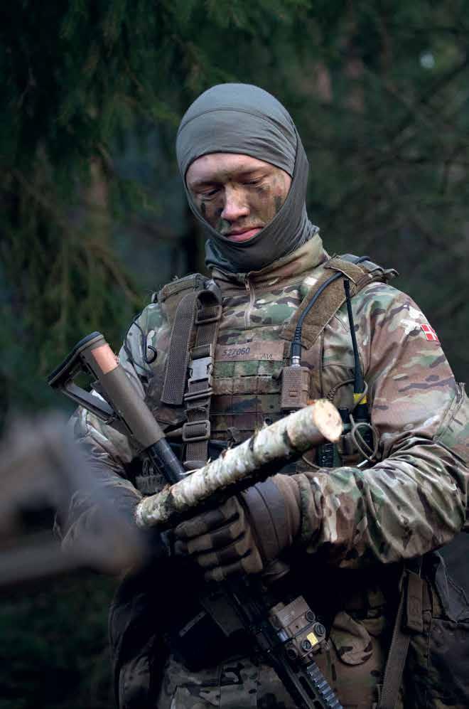 Du har også allerede gjort dig de første erfaringer med felten, og selvom det tager tid at vænne sig til livet som værnepligtig, har du nu haft én måned til at lære, hvordan lommerne i din basis skal pakkes, og hvordan du begår dig over for dine befalingsmænd. Sidder det stadig ikke helt fast? Bare rolig –SOLDATEN er her for at hjælpe! Dette magasin er fyldt med tips og tricks, der gør det lettere at få mest muligt ud af din tid i tjenesten. På side 6 finder du træningsvejleder Jesper Wendells guide til at holde kroppen klar til tjeneste i en presset hverdag, på side 16 er der et gradstegns-vendespil, og på side 22 en guide til felten, så du får den bedst mulige nat i posen og kan tage de første skridt mod at mestre kunsten at være et komplet