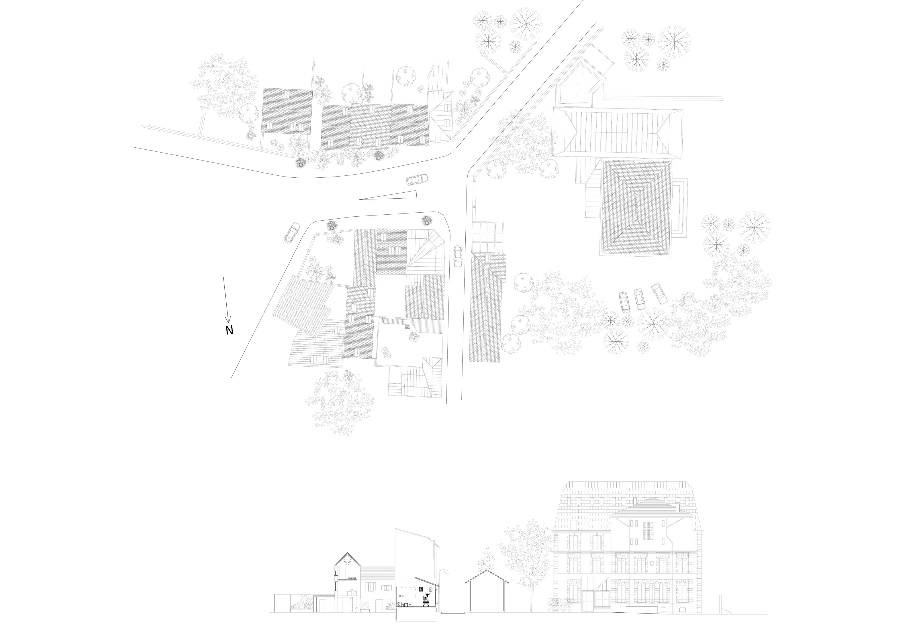 L’existant contient la grande halle et leurs espaces de stockage. Des extensions en structure plus légère et transparente ont été rajoutées afin de permettre une progression vers l’extérieur, passant de sa structure solide et massive vers une architecture plus ouverte et aérée.