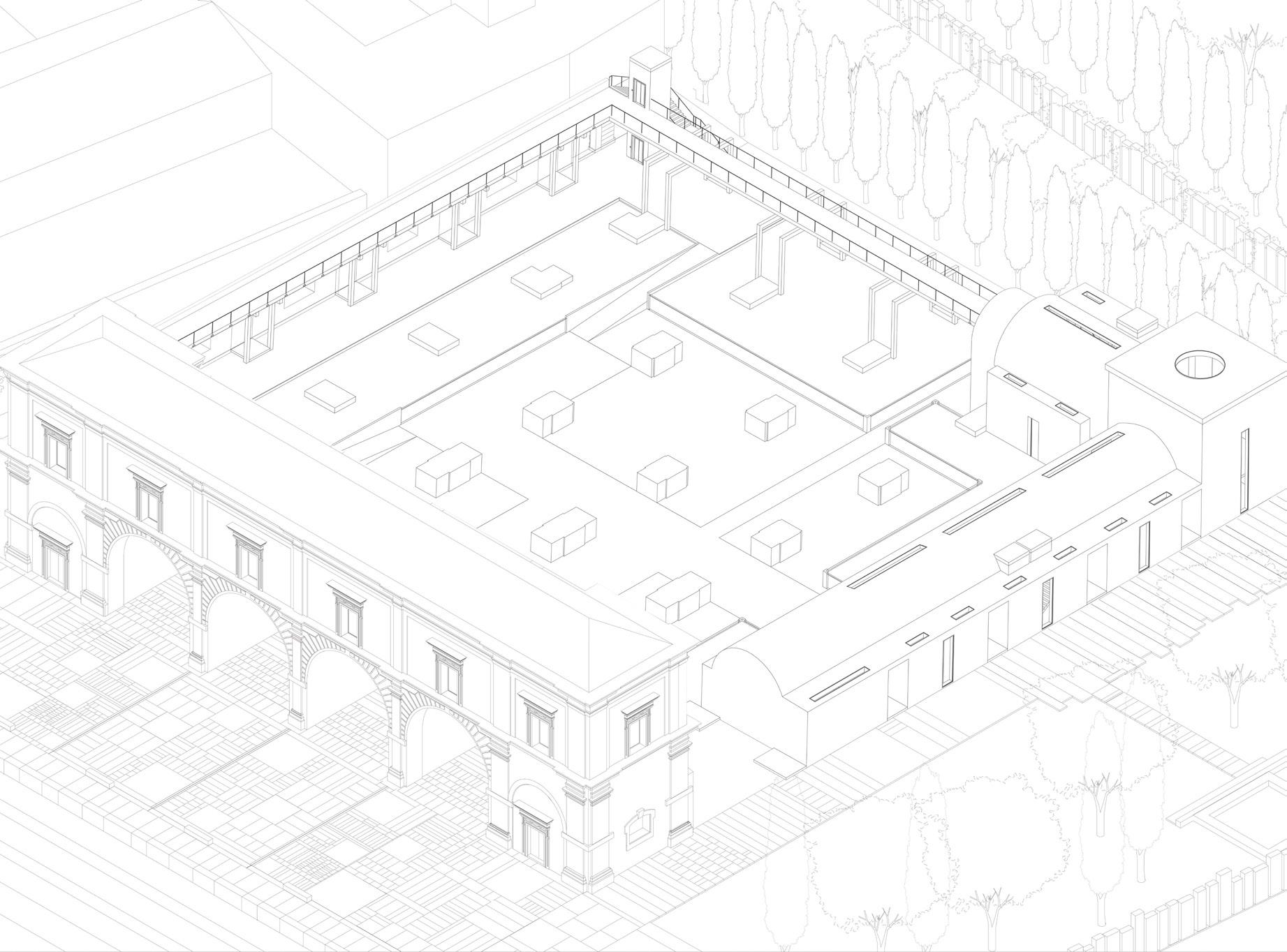 L’enjeu est donc de jouer et de valoriser l’existant. Ainsi, l’édifice qui abrite le musée vient épouser un bout de la trame, permettant de laisser place à un jardin jouant avec la différence de niveau pour faire ressortir les fondations et immerger le spectateur. La création d’une passerelle permet de passer de l’intérieur à l’extérieur en suivant le seul mur de ronde restant, et termine d’encadrer la trame.