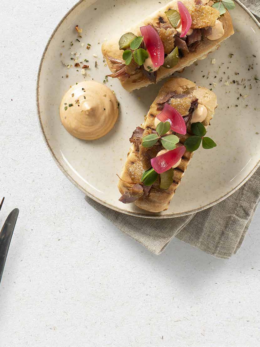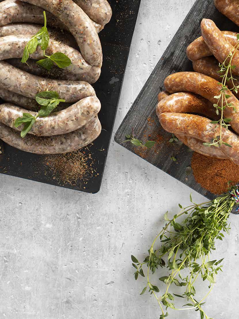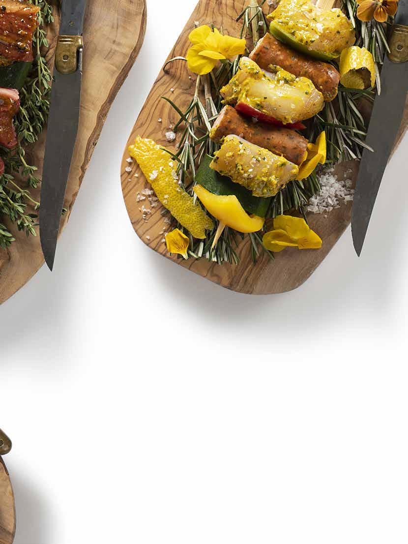 INDHOLD Indledning/indhold . . . . . . . . . . . . . . . . . . . . . . . Side 2 Bæredygtighed Side 3 STARTERS Lakserillette Side 4 Vitello Tonnato Side 5 Dampede hvide asparges Side 6-7 Whisky beef Side 8 Hotdog med confiteret and Side 9 Beef sliders Side 10-11 Pork sliders Side 12 Chicken sliders Side 13 BØRNEMENU Crispy chicken fingers Side 14 One pot pasta . . . . . . . . . . . . . . . . . . . . . . . . . . . Side 15 Spareribs Side 16 Kartoffelspyd Side 17 PØLSEMAGERI Chipolata Side 18 Salsiccia og Merguez Side 19 Peberpaté Side 20 Grov spegepølse Side 21 CONVENIENCE Indbagt farsbrød Side 22 Indbagt laks med spinat Side 23 Mørbrad grillspyd Side 24 Okse grillspyd og kyllinge grillspyd Side 25 Fiske-kebabspyd . . . . . . . . . . . . . . . . . . . . . . . . .Side 26 Grøntsags-kebabspyd Side 27 Spicy dessert-kebabspyd Side 28 PASTARETTER One pot pasta med bacon og blue cheese . . . . . . . . .Side 29 One pot pasta med cremet tomatsauce Side 30 Pastaret med grøntsager og bønner Side 31 TILBEHØR Broccolisalat og coleslaw Side 32 Kartoffelsalat Side 33 MIDDAGSRETTER Mørbradgryde . . . . . . . . . . . . . . . . . . . . . . . . . . .Side 34 Ølbraiseret oksesteg Side 35 FÆRDIGE SAUCER 17 sauce klassikere Side 36-37 BUTCHERY Butcheryposer Side 38-39 Krydderidåser Side 40-41 MARINADER OG KRYDDERIER Sortiment . . . . . . . . . . . . . . . . . . . . . . . . . . . . Side 42-43