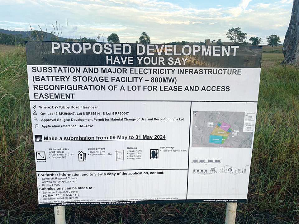 RESIDENTS personally hand delivered over 140 submissions to Somerset Council over the proposed Hazeldean battery storage facility near Kilcoy just before public submissions closed on Friday, May 31. The submissions were delivered by residents concerned about the impact a Battery Energy Storage System (BESS) proposed by Enervest, could have on the surrounding community.