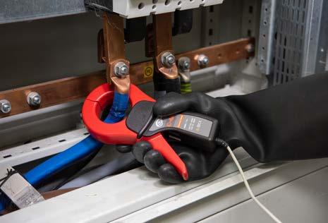 Las pinzas flexibles de corriente, también llamadas bobinas de Rogowski, se utilizan para medir las corrientes alternas en las estructuras de difícil acceso, donde no hay posibilidad de fijar las pinzas rígidas. Permiten medir las corrientes de hasta 6000 A. Terminadas con un conector de 5 pines, se conectan directamente a los analizadores de calidad de energía.