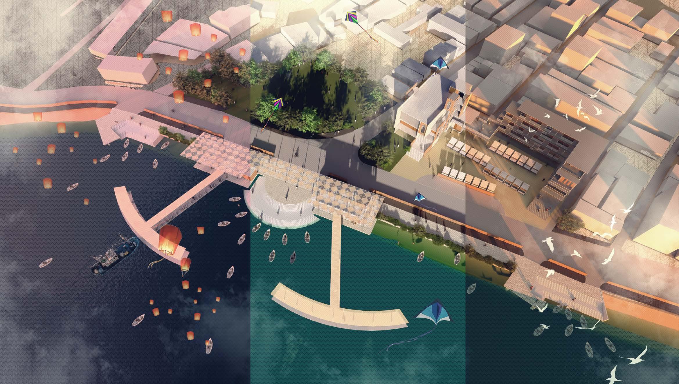 Swarighat ( Old Dhaka) situated on the bank of BuriGanga River, used to be one of the major entry points of Dhaka city. Now it’s been neglected. The area consists of a heritage mosque, wholesale fish market, business hub( Godhi Ghar) & terminal This project seeks to Enhance the potentiality of this place and make it a tourist destination for the city. A vibrant urban pop-up space works as a Business & fish market in the morning, a retail market throughout the day, and a tourist attraction point in the evening. So people may come here, have a boat ride, see the sunset, and most importantly have various type of fish food items. swarighat can be a new opportunity to enjoy city life in old Dhaka.