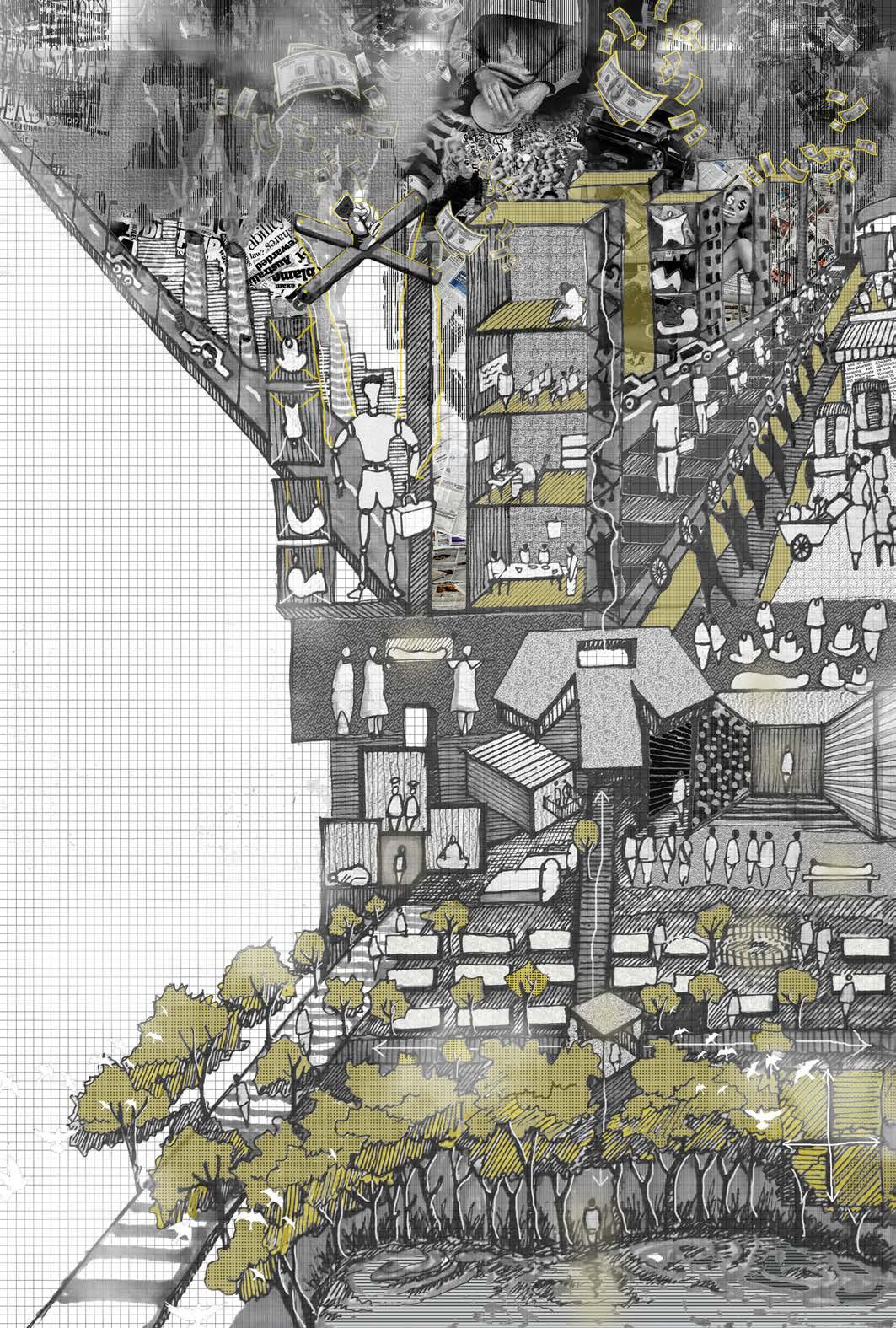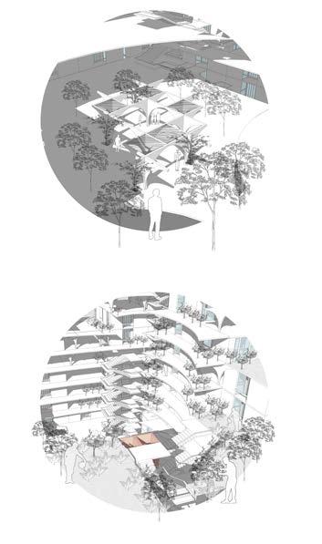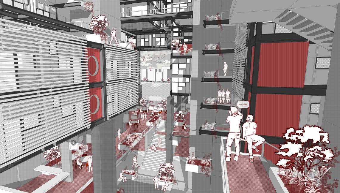 5. What if this whole story is not just a linear horizontal connection, it’s also connected vertically & in different ways, so floors are connected so thus all the buildings. Connected to others horizontally and vertically by urban farming, recreation, and relaxing workspaces. People may always travel through the gradient of public-private, green, indoor-outdoor, and different kinds of spaces.