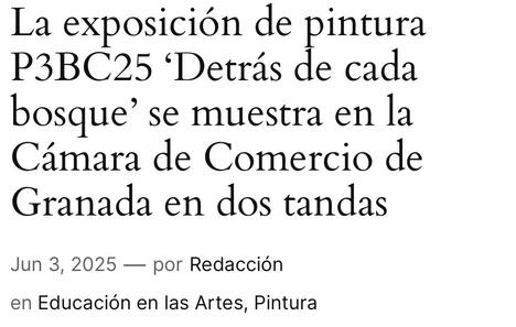 La obra Pararge aegeria fue seleccionada para formar parte de la exposición colectiva “Detrás de cada bosque”, celebrada del 4 al 18 de junio en la Cámara de Comercio de Granada, junto a una selección de trabajos de otros compañeros de clase Asimismo, la obra ha sido publicada en la primera edición de la revista La Brava.
