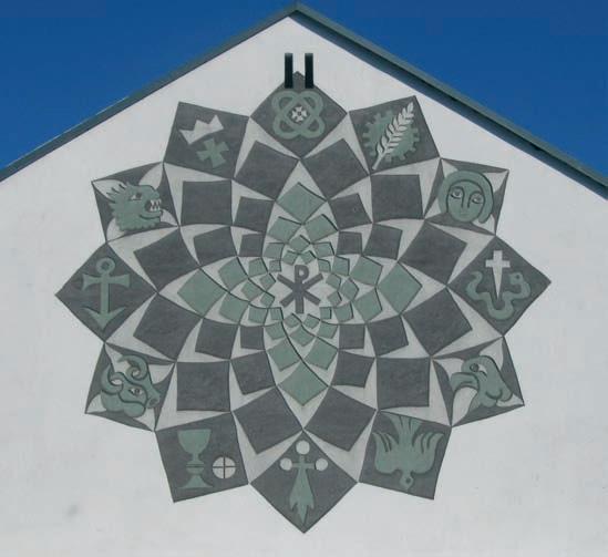 Die Rosette an der Westseite des Pfarrheims ist ein markantes Element des Mürzzuschlager Stadtbilds. Vor dem Abriss des Gebäudes lohnt es sich nochmals genauer hinzusehen. Im Jahr 1964 von der Mürzzuschlager Künstlerin Isolde Joham in der so genannten Sgraffitto-Technik geschaffen, enthält das Kunstwerk eine tiefe christliche Symbolik.