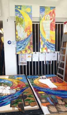Firma Starzacher ausgeführt hat. Gesagt, getan, habe ich mich mit Pfarrer Schwingenschuh auf den Weg gemacht, um diese persönlich zu besuchen und viele brauchbare Anregungen zu erhalten. Die Klagenfurter Glasfirma Starzacher war uns so sympathisch, dass diese dann auch den Zuschlag für die Fertigung bekam.