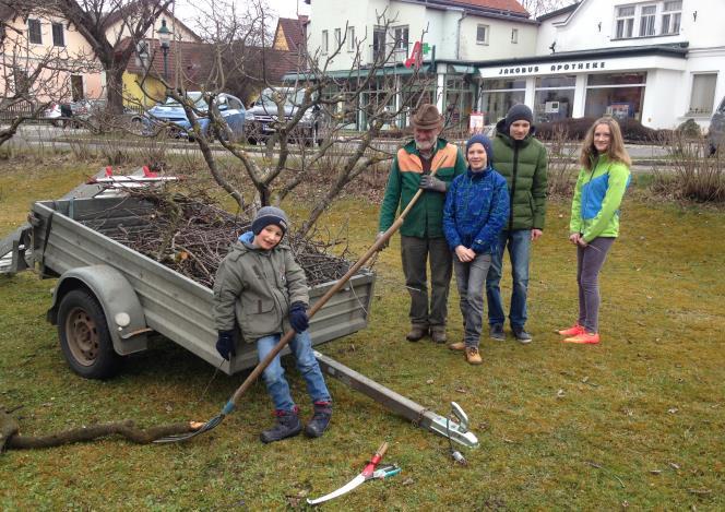 Wir danken Herrn Simon Paar für das Zurechtschneiden der Obstbäume am Pfarrgrund. So werden wir wieder eine beachtliche Ernte an Äpfeln und Zwetschken haben. Dabei haben ihm seine vier Enkel geholfen, die alle Ministranten sind.