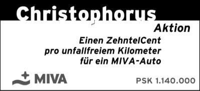 Sammlung für die MIVAChristophorusaktion bei der Hl. Messe am Sonntag, dem 24. Juli 2016 um 10.30 Uhr
