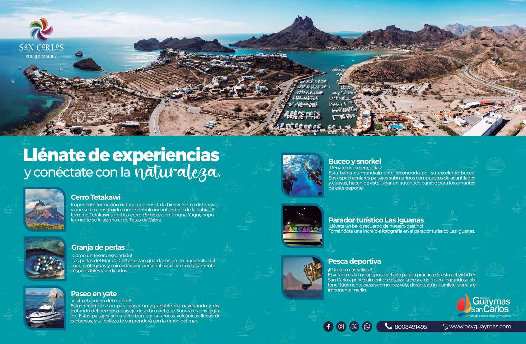 Este maravilloso lugar no alcanza a ser descubierto en una sola visita, sobre todo si usted piensa en conocer todos los escenarios naturales que lo han hecho famoso. Desde el fondo del mar hasta la cumbre de sus montañas como el cerro El Vigía que protege a la ciudad de Guaymas, y el cerro Tetakawi que delinea las marinas de San Carlos, la naturaleza lo ha premiado con grandes privilegios. La fauna marina más bella del mundo, la flora desértica más exótica, los atardeceres más hermosos de Sonora y sus siempre soleadas playas entre el desierto y el mar o al pie de la montaña, dan fama mundial a esta región de la costa sonorense.
