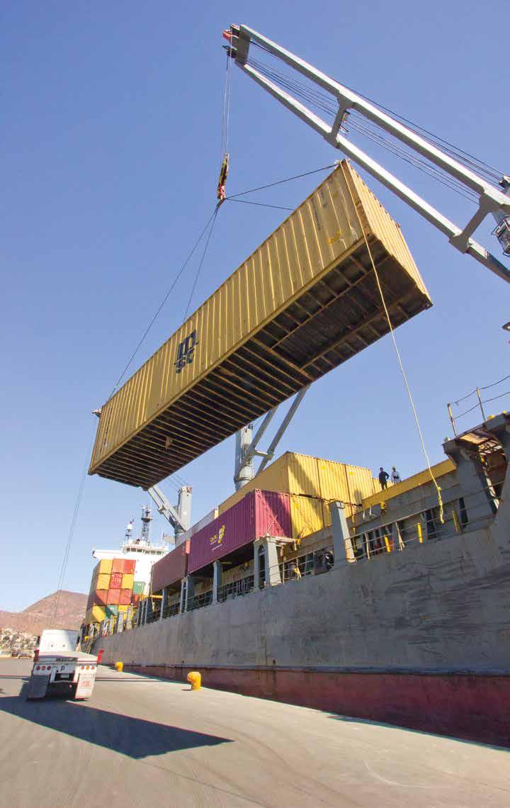 Por Guaymas se exporta cobre en concentrado, se exporta ácido sulfúrico, se reciben fertilizantes y se envían hacia los puertos de China algunos productos del campo sonorense.