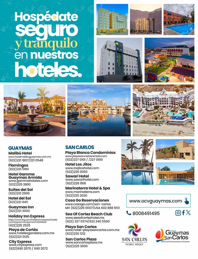 Guaymas-San Carlos Guia (2024-Año 18 de publicación consecutiva) es una Edición Especial de Imágenes de Sonora® (2569 / ™145688), producida con el patrocinio de los amigos, colaboradores, empresarios anunciantes y promotores del desarrollo de Guaymas y Empalme. Publicada por: Editorial Imágenes de Sonora, S.A. de C.V. Calle Puebla Nº 30 entre Revolución y H. Aja, Hermosillo, Sonora 83000 México.