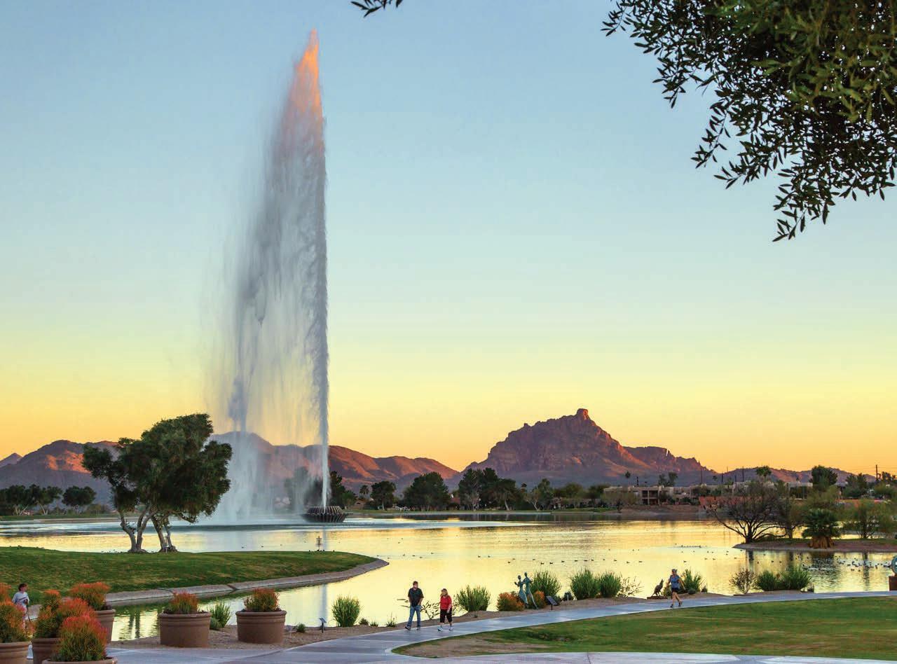 • Be Entertained! Performing Arts at the Lakeside Village Amphitheater are as varied – and grand – as your imagination! Treat the kids to a “Movie in the Park;” marvel at Ballet Under the Stars, applaud your neighbors of the Fountain Hills Community Theater or listen to the melodious sounds of musical performances by Arizona’s finest entertainers.