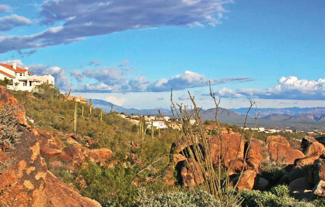 Developed as a custom homesite sales effort between 1988 and 1998, lots range in size from approximately .25 acre to over an acre. Each site was initially planned with a designated building envelope and open space requirements, preserving as much natural desert as possible. The result is a lovely setting of elegant custom homes tucked within the boulder outcroppings and sensitive desert landscapes that only Mother Nature could create.