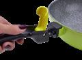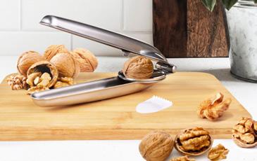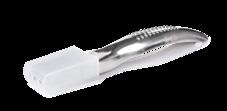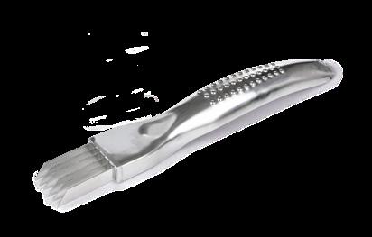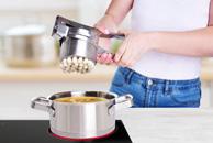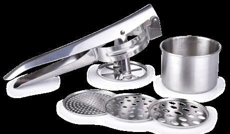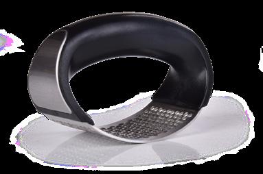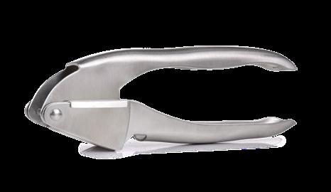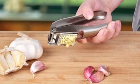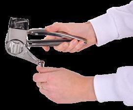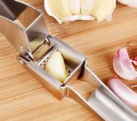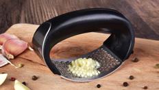 Hintázó fokhagymanyomó, rozsdamentes acél és minőségi műanyag kombinációja, ergonomikus nyéllel. Hossz: 10,5 cm.