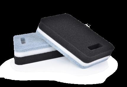 Jól habzik és nem okoz karcolásokat, érdesített oldal a megszáradt szennyeződések könnyű eltávolításához.