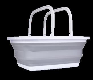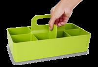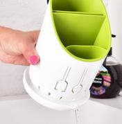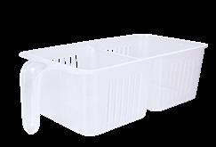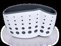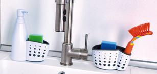 Függeszthető rendező két tapadókoronggal, műanyag és szilikon kombinációja, alján praktikus vízelvezető nyílásokkal. Méretek: szélesség 14,5 x mélység 5,5 x magasság 8,5 cm.