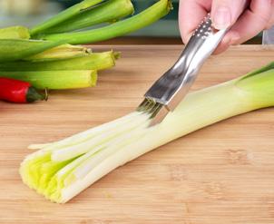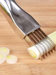Ezzel a szeletelővel könnyedén felvághatja például az újhagymát, póréhagymát, fokhagymát és más zöldségeket pontos csíkokra vagy szeletekre.