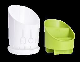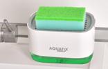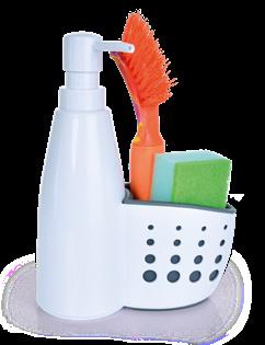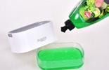 Rendező/állvány mosogatószer vagy szappan adagolóval, műanyag és szilikon kombinációja. Méretek: szélesség 14,5 x mélység 7 x magasság 20 cm, adagoló térfogata kb. 380 ml.