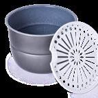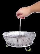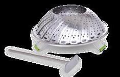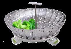 KEZELHETŐSÉGÉRT. A LYUKAK RENDSZERE EGYENLETESEN ENGEDI ÁT A GŐZT AZ ÉTELEKRE.