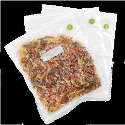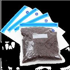 Speciális vákuumos cipzáras tasakok szeleppel. Minden tasak előre elkészített, feliratozható mezővel