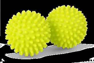 3 db gyapjú szárítógolyó praktikus textilzsákban, a golyók átmérője kb. 7 cm.
