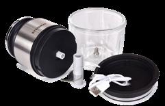 MINIAPRÍTÓ USB, újratölthető aprító fűszernövényekhez, hagymához, fokhagymához és puha gyümölcsökhöz otthoni használatra. Teljesítmény: 45 W, lítium akkumulátor DC 3,7V 1500mAh. Rozsdamentes acél, üveg és erős műanyag kombinációja. A csomag tartalmaz USB kábelt. Maximális méret: átmérő kb. 10 x magasság 15,5 cm, üvegtál 300 ml. 10 790 Ft