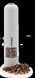 SYSTEMAT XXL Elektromos őrlő LED világítással sóhoz, borshoz vagy fűszerekhez. Kerámia őrlőmechanizmus. 4 ceruzaelemmel működik, amelyek nem tartozékok. Magasság 22 cm, alsó átmérő 5 cm.