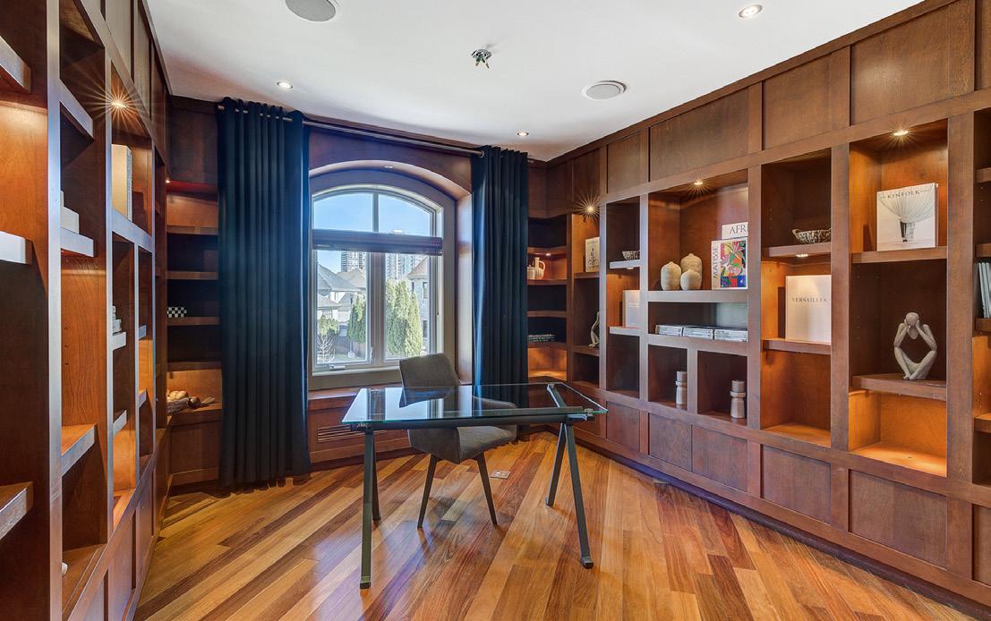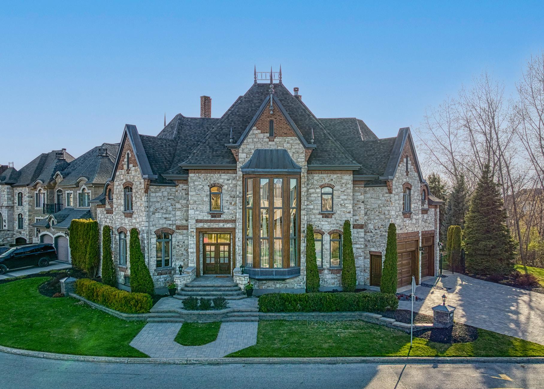 Prestigious residence inspired by Tudor architecture , blending timeless elegance with modern comfort. This one-of-a-kind property offers 4 bedrooms upstairs plus a refined office, a spectacular solarium with NanaWall, chef's kitchen, heated floors, full home automation, and four bathrooms. The finished basement includes a cinema room, guest bedroom, ample storage, wine cellar potential, and garage access. Private backyard with mature trees, heated in-ground pool, spa, covered terrace with fireplace, pergola, and outdoor kitchen. Premium materials and upscale finishes throughout. A truly exceptional lifestyle with no compromise.