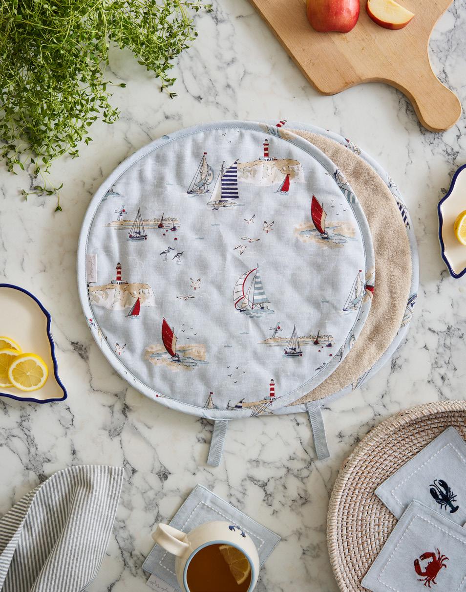 Add the peacefulness of coastal life to your kitchen with Sophie’s illustrations of sailboats, lighthouses, and seabirds on a soft blue background.