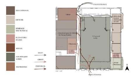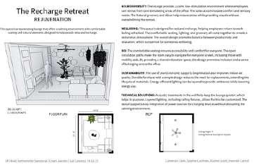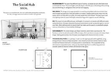 As a group, we focused on thoughtful spatial planning that balances public and private areas, allowing for activities such as group sessions, individual reflection, and hands-on art-making. The design emphasizes natural light, transparency, and the use of calming materials to support a therapeutic atmosphere. Throughout the project, we have worked collaboratively to develop concepts, select materials, and design spaces that encourage creativity while also making people feel comfortable and supported.