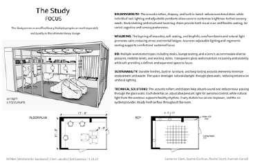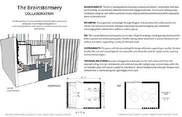 For this project, me and my four classmates collaborated to design a set of workplace typologies that support different modes of working. We focused on four key categories: focus, collaboration, social interaction, and rejuvenation. Each of us designed one space within each category, resulting in a total of 16 unique typologies. Although we worked individually on our designs, we coordinated closely to ensure that the overall set felt cohesive in terms of layout, design language, and user experience.