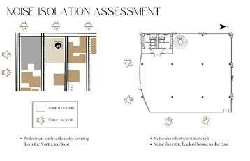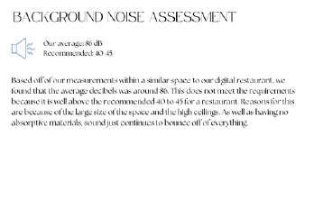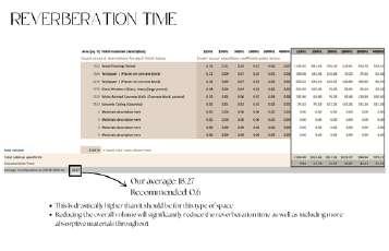 The project also explored the relationship between design aesthetics and functional acoustic performance, ensuring the space met both visual and auditory comfort standards. Through this process, we strengthened our skills in technical documentation, spatial analysis, and datadriven design decision-making. This experience reinforced the importance of integrating acoustics early in the design process to create well-balanced hospitality environments.