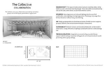 To communicate our ideas clearly, we produced both a floor plan and a reflected ceiling plan (RCP) for each typology. These drawings helped demonstrate how the spaces would function within a larger workplace environment, showing how architectural elements like lighting, circulation, and spatial hierarchy support different types of work. We used Revit to develop our technical drawings and SketchUp for 3D modeling and visualization throughout the design process.