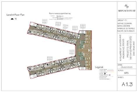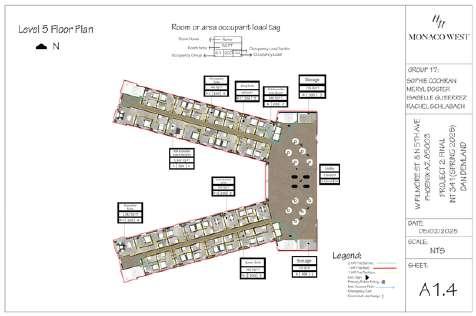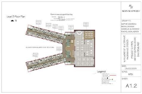 For this project, I worked alongside three underclassmen to create a detailed code analysis for their hotel design project, Monaco West. In addition to contributing to the research and organization of the analysis, I took on a mentoring role helping guide my teammates through the process, answering questions, and offering design insight when needed. Together, we reviewed and applied relevant building codes to ensure their hotel design met safety, accessibility, and zoning standards. This experience allowed me to strengthen my leadership skills while also supporting others in their learning and growth as designers.