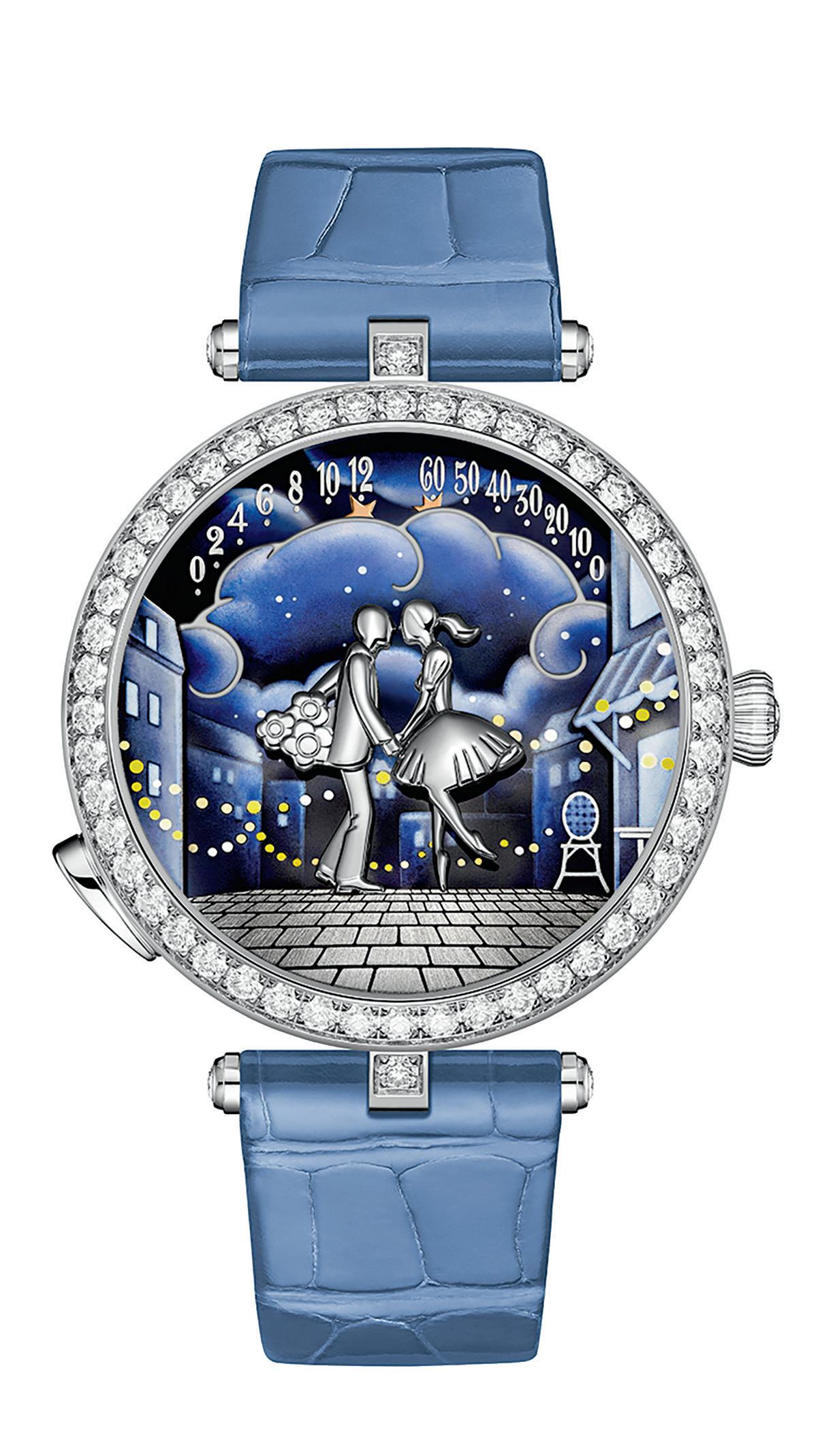 Two lovers meet on a bridge; a young couple have their first kiss surrounded by twinkling lights and stars. Fairies grace the skies, ballerinas dance across dials and flowers flutter in an imagined breeze. Romance, enchantment and the beauty of nature have been part of the world of Van Cleef & Arpels since its beginnings.