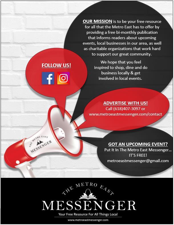 www.metroeastmessenger.com 8 804 S. Main St. Troy, IL (618) 667-6268 25% Off New Client Cut & Color Service *Must mention ad when booking 2400 N. Center St, Maryville, IL (618) 410-0882 CHELSEY REED Hair Designer & Makeup Artist Save 10% On Grooming, 1 Day of Lodging Or Day Camp ! 2330 South Center St. Maryville, IL www.bennysbnb.com (618) 344-4096 $5 Off Your $25 Food Purchase Must Present Coupon Expires 2/12/23 4 Bacon Wrapped Filet Mignon $12.99 Per LB Must present coupon. Expires 2/12/23