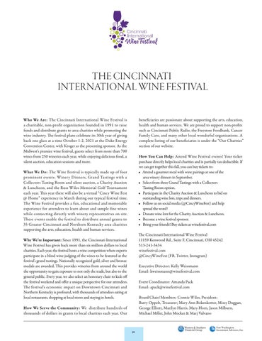 The Cincinnati International Wine Festival 11159 Kenwood Rd., Suite F, Cincinnati, OH 45242 513-241-3434 winefestival.com @CincyWineFest (FB, Twitter, Instagram)