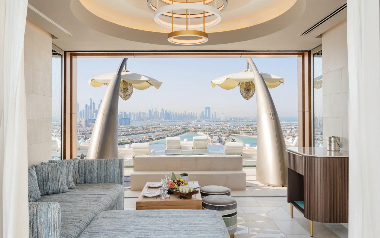 Dining plays a central role in the experience. Guests can reserve tables at Milos, by acclaimed Chef Costas Spiliadis, for Greek Island flavor; enjoy omakase in a cabana at Nobu by the Beach; or explore standout concepts like Carbone, whose recent arrival (late 2025) only enhanced the impressive list of dining options on property. For those seeking something a little more exciting and vibrant, Cloud 22 should be at the top of your list. The hotel’s iconic rooftop sky pool, currently in collaboration with Ounass x Dolce&Gabbana, which makes you feel dropped into an eternal Italian summer, offers sweeping views from cabanas and an infinity pool overlooking The Palm. One can catch a sunset and a live DJ while indulging in cocktails for the ultimate escape.