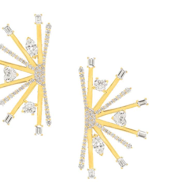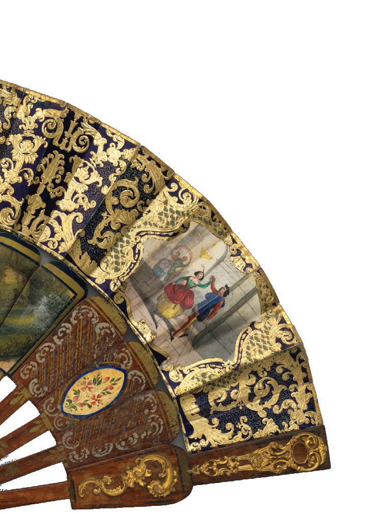 Clockwise from top left: İTÄ Bahia Ring (itajewelry.com). Assael NatureScapes Earrings. Available through Diamond Cellar in Nashville and assael.com. Asante Tourmaline & Diamond Ring from Maison H Jewels (maisonhjewels.com). Briony Raymond Aurora Earrings (brionyraymond.com). Swati Dhanak Floating Galaxy Fan Earrings (swatidhanak.com). Jenna Blake Fan Earrings. Available through Ylang Ylang in St. Louis and jennablake.com. Crisscut Diamond Earrings from Christopher Designs. Available through Richter & Phillips Jewelers in Cincinnati, Rivard Jewelers in Lexington, Simons Jewelers in St. Louis and christopherdesigns.com. Terzihan Epoca Earrings (terzihan.com). Kwiat Chandelier Earrings. Available through Reis-Nichols Jewelers in Indianapolis, Diamond Cellar in Nashville, and kwiat.com. Edgar Degas, , ca. 1880. Pastel on gray-green laid paper. Image courtesy of the Metropolitan Museum of Art. Eden Presley Azurmalachite & Tourmaline Fan Earrings. Available through Moyer Fine Jewelers in Indianapolis and edenpresley.com. Picchiotti Spessartite and Diamond Ring. Available through Moyer Fine Jewelers in Indianapolis and picchiotti.it. Opposite page clockwise from top left: Spanish or French fan, dated 1845; Fan with Poetic Verses, dated 1301 AH/1883–1884 CE; Fan, possibly Spanish, dated 1850–69; French fan, dated 1870-79; French or Dutch fan, dated late 17th–early 18th century. All fan images courtesy of the Metropolitan Museum of Art.