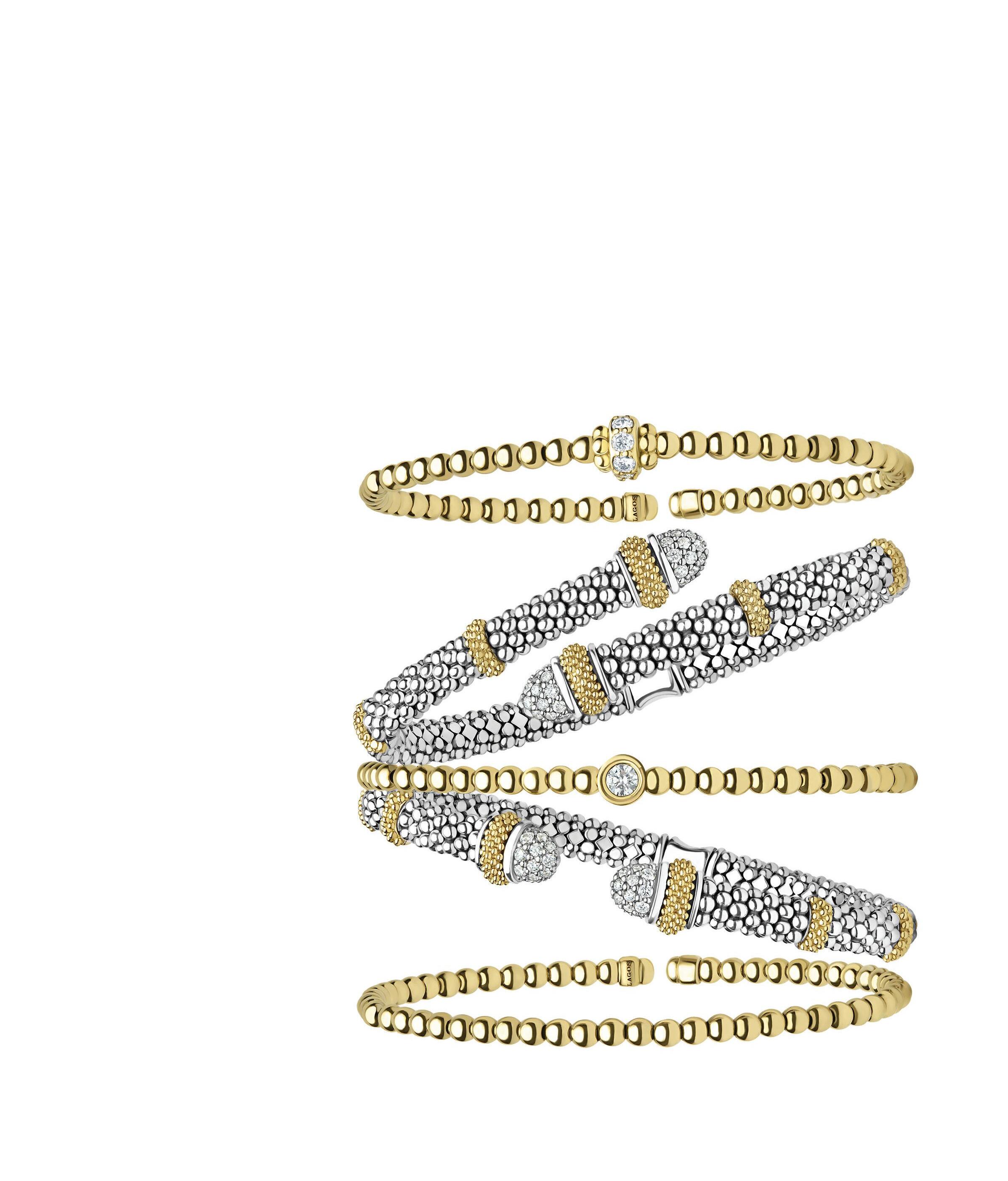 Crafted in 18k gold, silver, and sparkling diamonds LAGOS Caviar Lux and Caviar Gold is designed to stack, with a piece to celebrate every moment.