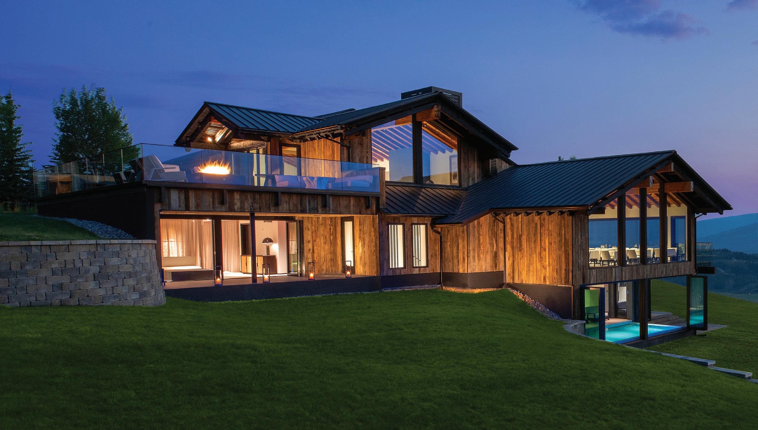 Hotel Yellowstone’s 36 lavishly appointed 600 square-foot guest suites are spread across the four-acre property in clusters of four within free-standing buildings that are either perched on the precipice of the butte or around a pond. The wood-sided structures with standing-seam roofs blend into the thoughtfully planned native plant landscape, which gives way to sagebrush-steppe and native grasses that create a transfixing ripple with the slightest breeze.