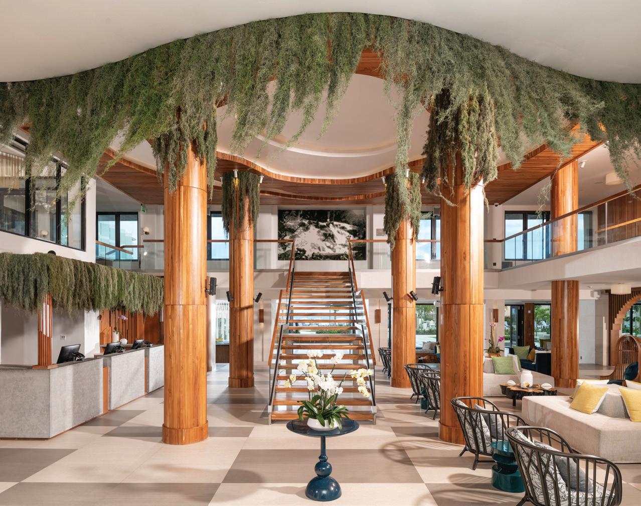 While Sandals Dunn’s River, situated on Jamaica’s north coast, had been open less than a year when the hurricane struck (it reopened on December 6), the property itself has deep ties to the brand. Adam Stewart’s father, the late Gordon “Butch” Stewart, grew up on the beaches around the former Arawak Hotel in Ocho Rios, which opened as Jamaica’s largest hotel in 1957. As a young boy, Butch even sold fish he’d caught to the kitchen. After acquiring the property in 2020, Butch's emotional ties to the place only deepened as he collaborated with his son, Adam, to reimagine the site, based on the original footprint architect Morris Lapidus drew for the Arawak Hotel. Then, as now, two hotel towers are angled so that the ocean remains the focal point. Jamaican roots are infused into every touchpoint, and in the case of a decades-old banyan tree present in the Arawak era, are literally fixed to the site.