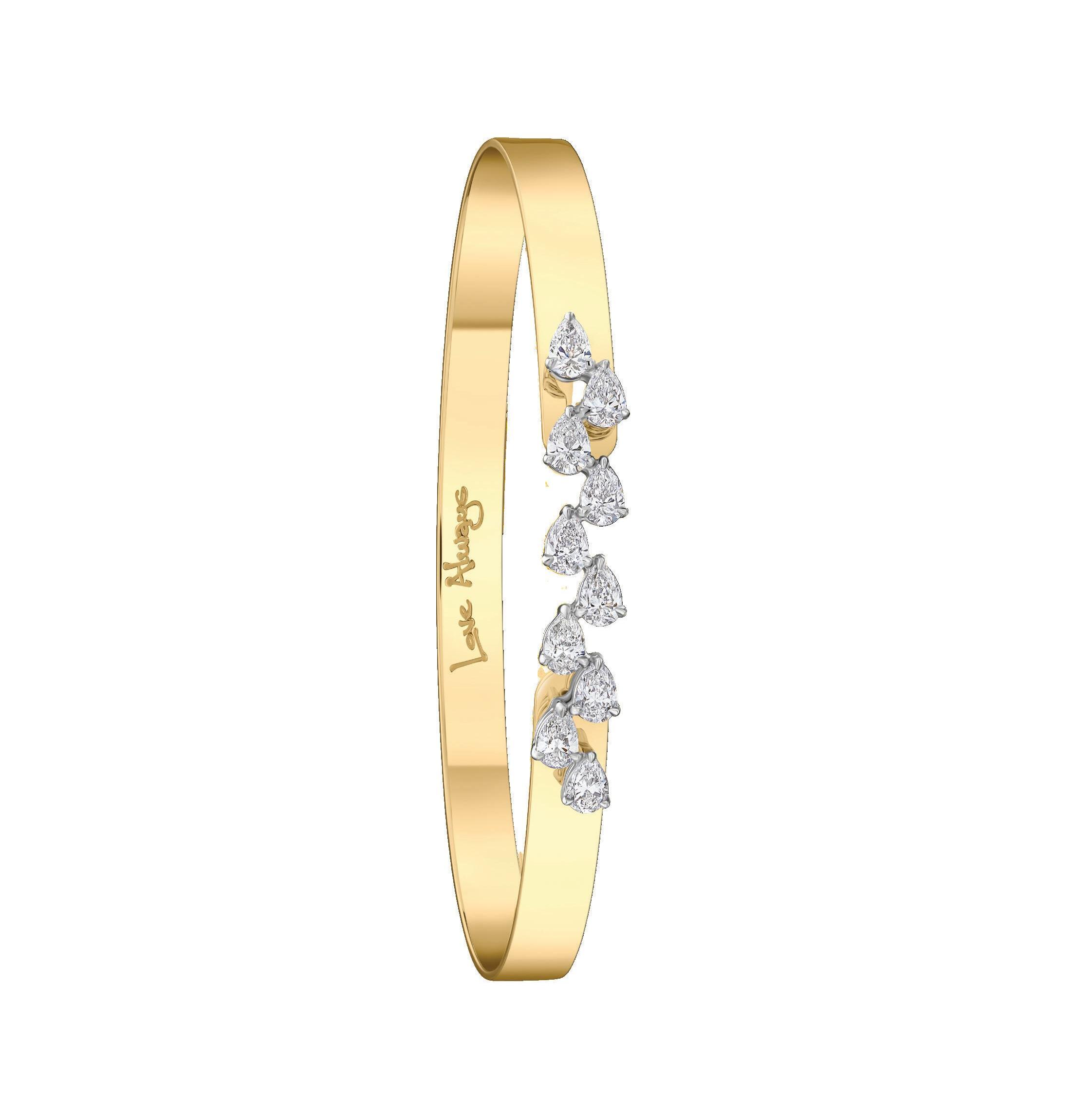 Pear checker love always bracelet - Phillips House: Crafted in high-polished 18k yellow gold, this bracelet features pear-shaped diamonds set in platinum prongs. Arranged in two aligned rows, the center catches light with every move. The smooth oval shape fits close to the wrist, made for both daily wear and dressed-up moments.