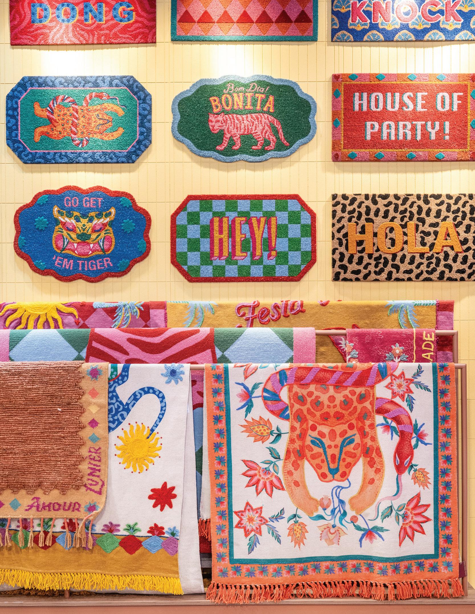des Victoires neighborhoods generated by a slew of cocktail parties held in permanent and pop-up showrooms as part of Paris Déco Off. A tradition for more than a decade, hundreds of oversized, colorful lampshades served as beacons in the Left and Right Bank neighborhoods, illuminating the textile industry’s creativity and use of sustainable fabrics. As part of the “Festival of Fabrics,” the facades of galleries, showrooms, the Hôtel de l’Industrie, and the storefront of the Bar du Moulin were dressed in lively textiles from the likes of Designers Guild, Thevenon, C&C Milano, and more.