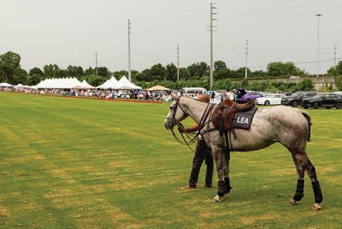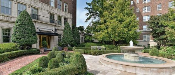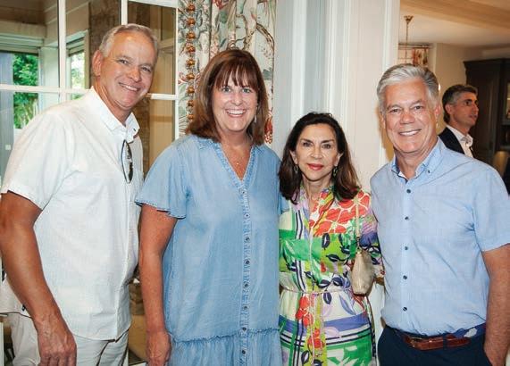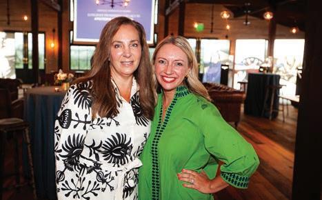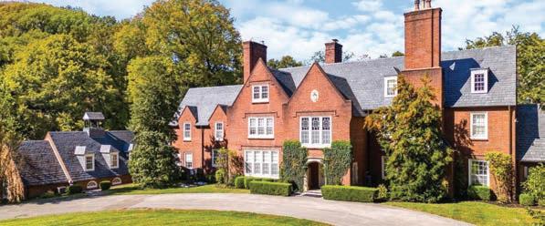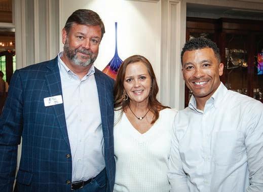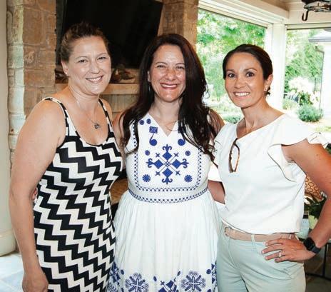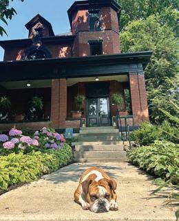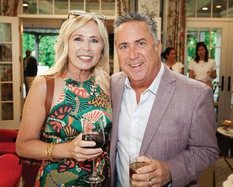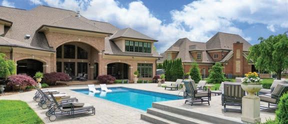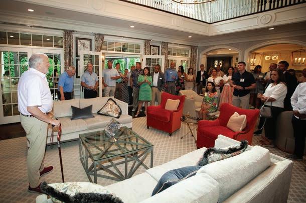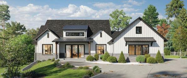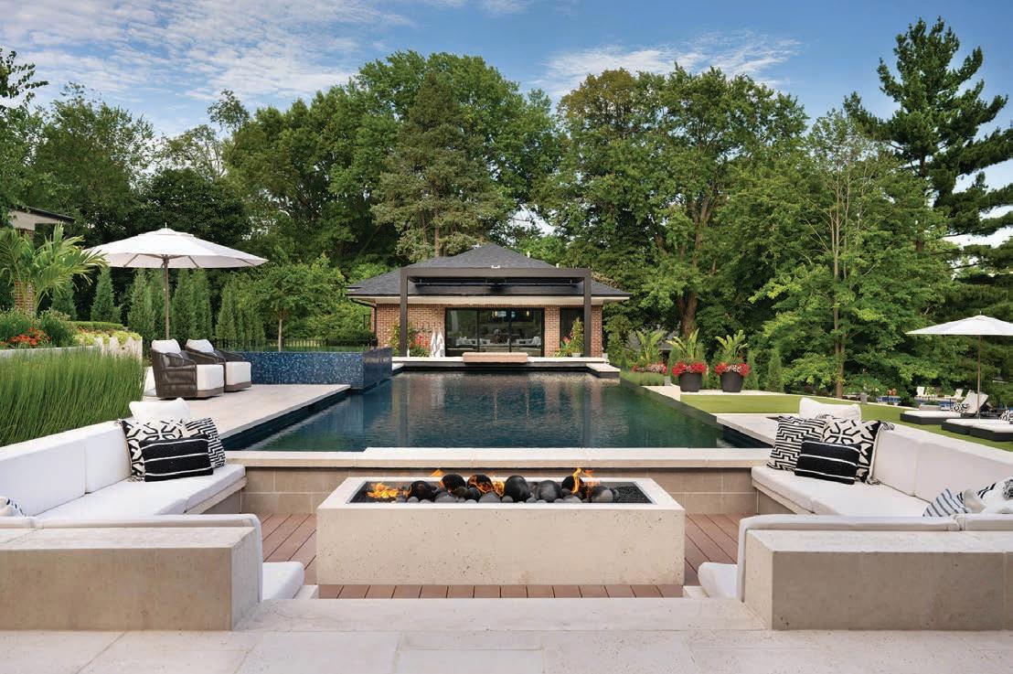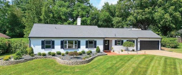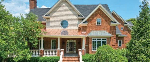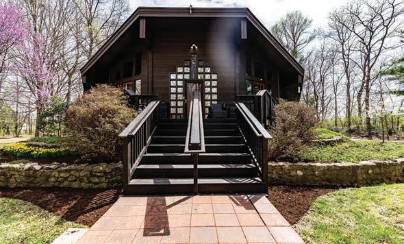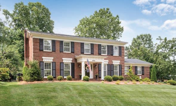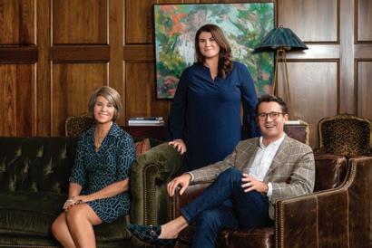 A 40-foot skylight crowns the corridor leading to the home's five bedrooms. At the end is a taxidermy giraffe that Lindsay said was procured from Louisville's Fleur de Flea after ladies from her running group spied it and sent her a photograph. The tranquil primary suite seems to float amid the trees courtesy of floor-toceiling windows on two sides. There are uniquely designed his and her closets, with hers being a fashionista's dream, and a spalike bath whose oval floating vanities mimic the contours of the centrally positioned soaking tub.