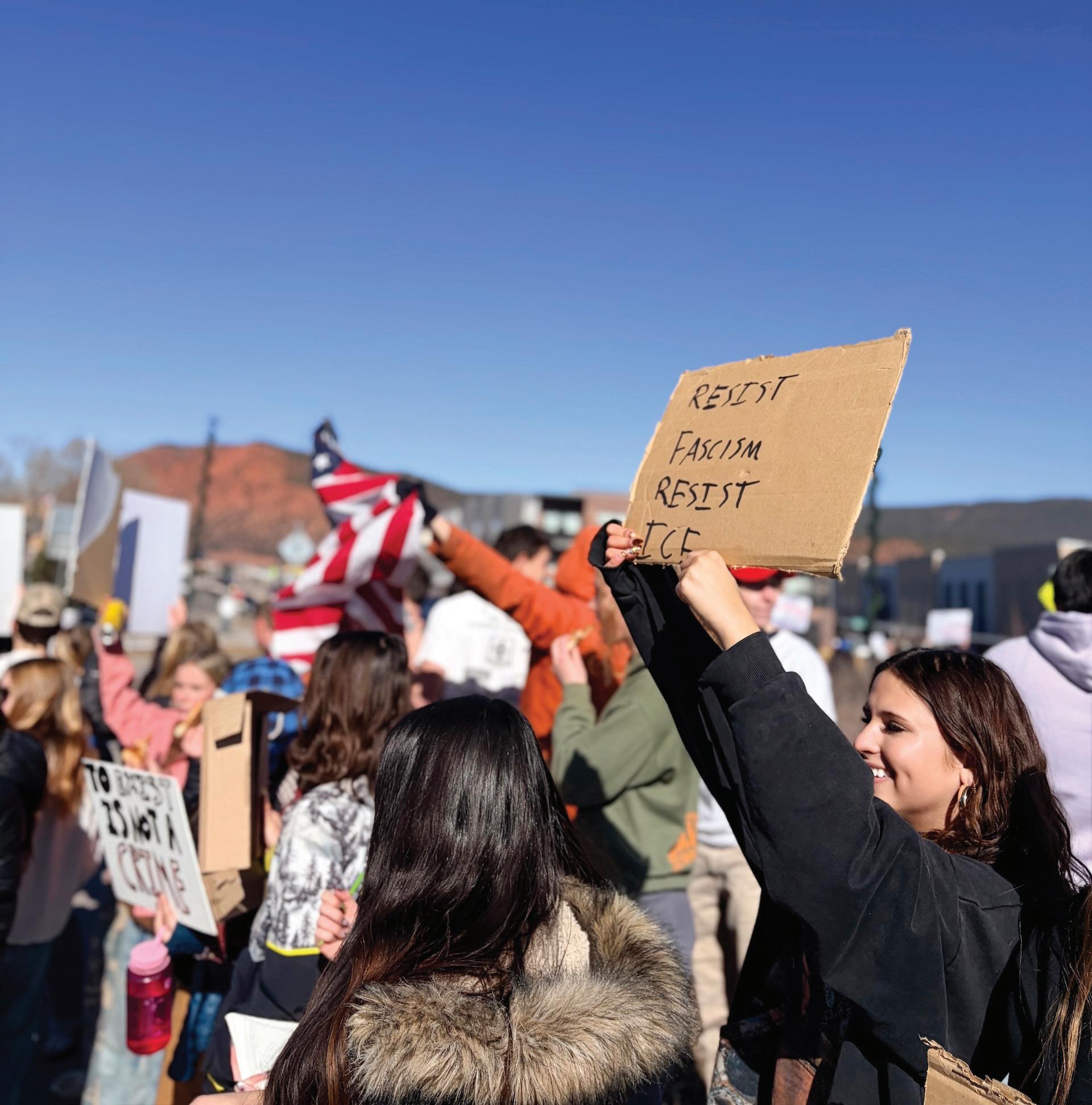 Chairs skidded over the floors and backpacks were zipped shut as hundreds of students left Roaring Fork High School (RFHS) on Jan. 30 during lunch, a customary practice, yet nothing was customary on this occasion. In mere minutes, hundreds of students filled what was empty space along the roundabout near 7/11 in Carbondale. They raised their voices and doodle-etched hands in protest against Immigration and Customs Enforcement (ICE) and demanded to be heard.