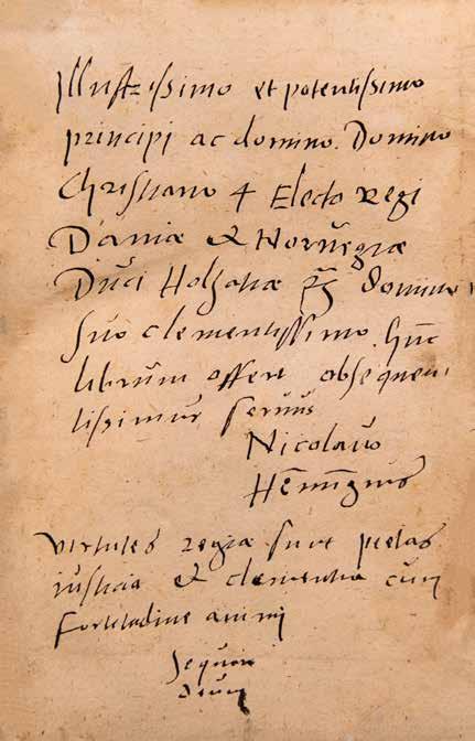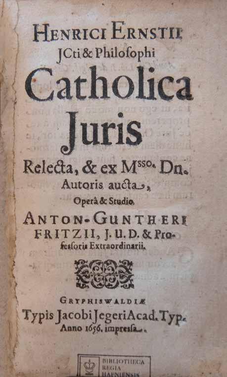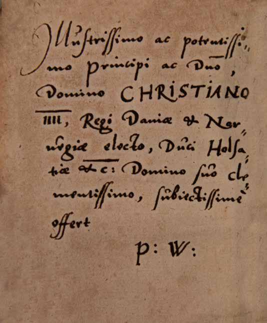 3 Værket er ganske rigtigt med i E 1 som post 4 på side 184, hvor det er katalogiseret som følger: ”I Idem Lipsij et Pontani II Vol. Amstelod. 1619 in 8t IV” men forsynet med et foranstillet ”NB”, der vel refererer til den usædvanlige note bagest. Prinsen – den senere Christian V – var den 12. maj 1660 lige fyldt 14 år.