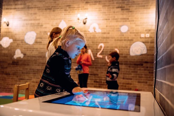 Det børnevenlige område er lyst, farverigt og imødekommende med god plads til leg og tumling. Her kan de bl.a. spille bordfodbold, brætspil, tegne og male. Der er også filmforevisninger,